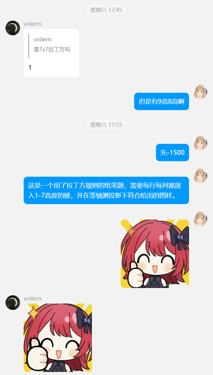 voilern:被抽象题面和低通过率劝退了,完赛后看莎佬做发现其实就是meta-match,尽管有些小问题(图形+小题答案的顺序不一致、提取的表示方式有些清奇),但是是瑕不掩瑜的好题!