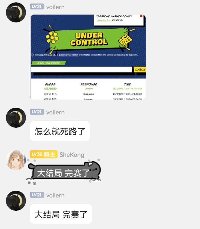 missile:完全没玩过,一个一个提示问gpt,居然凑出来了,最后的leader clue four颇有拿着手机找手机的感觉。